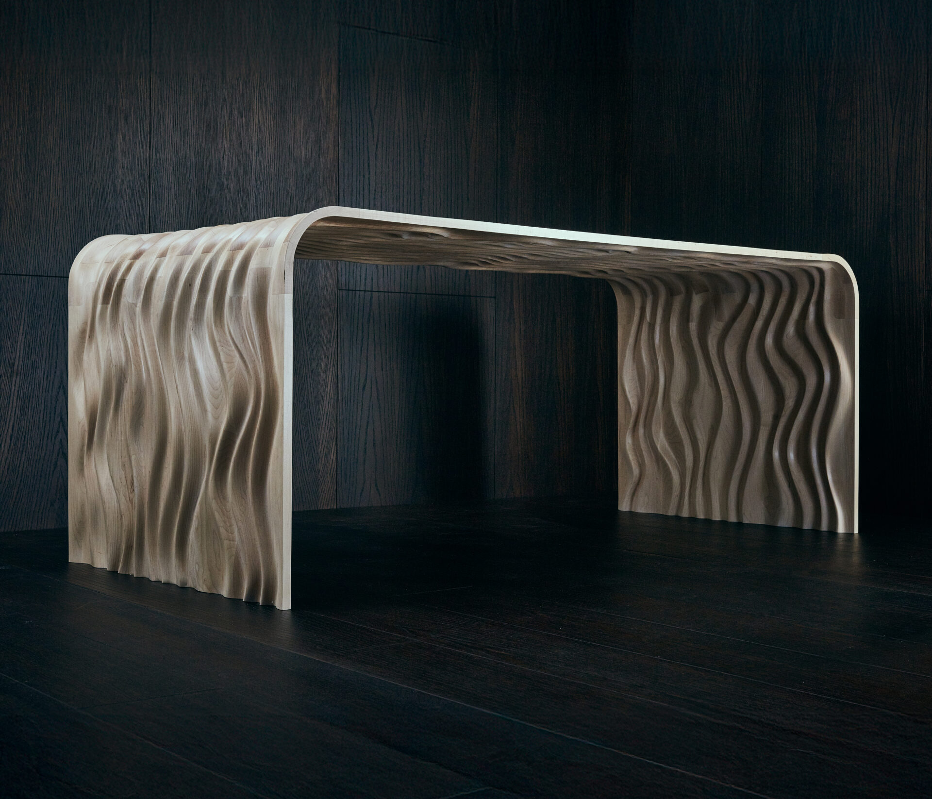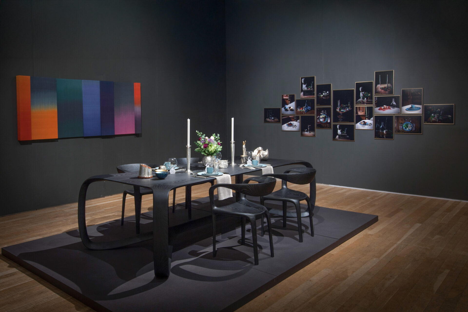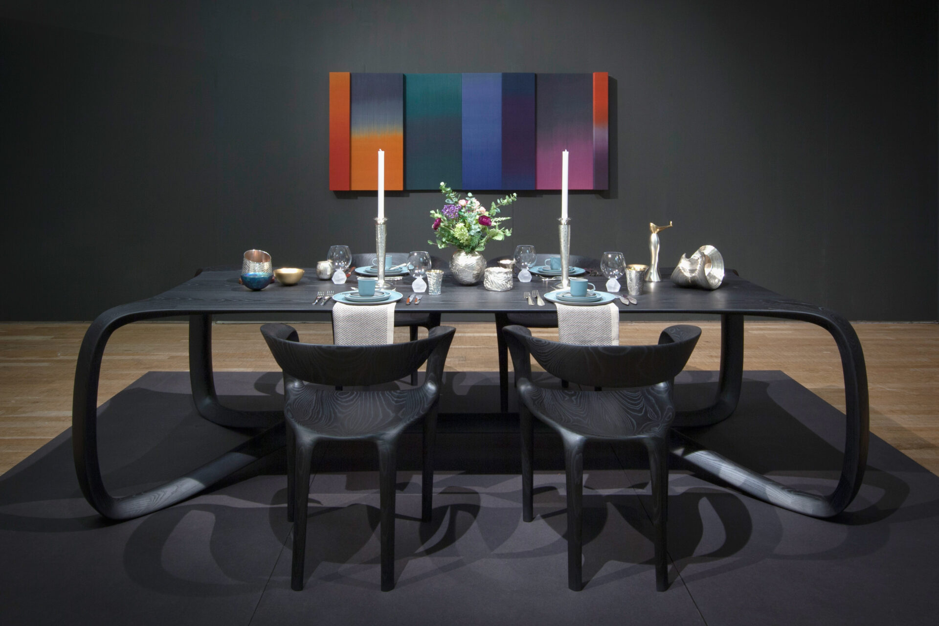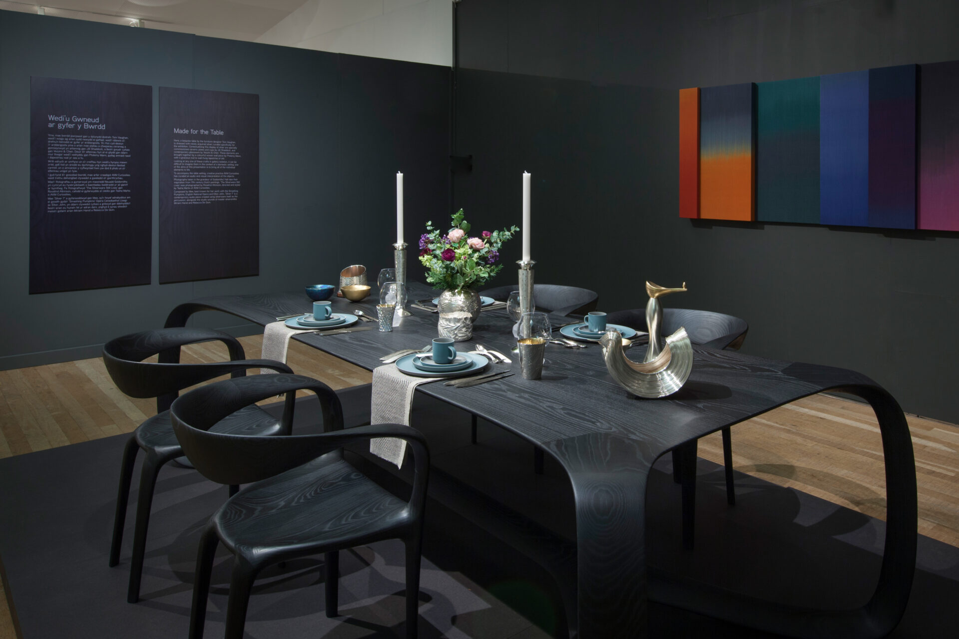 The Goldsmiths tables ebonised finish and clean lines are designed to compliment and offset the exemplary craftsmanship on display at the Goldsmiths exhibition.