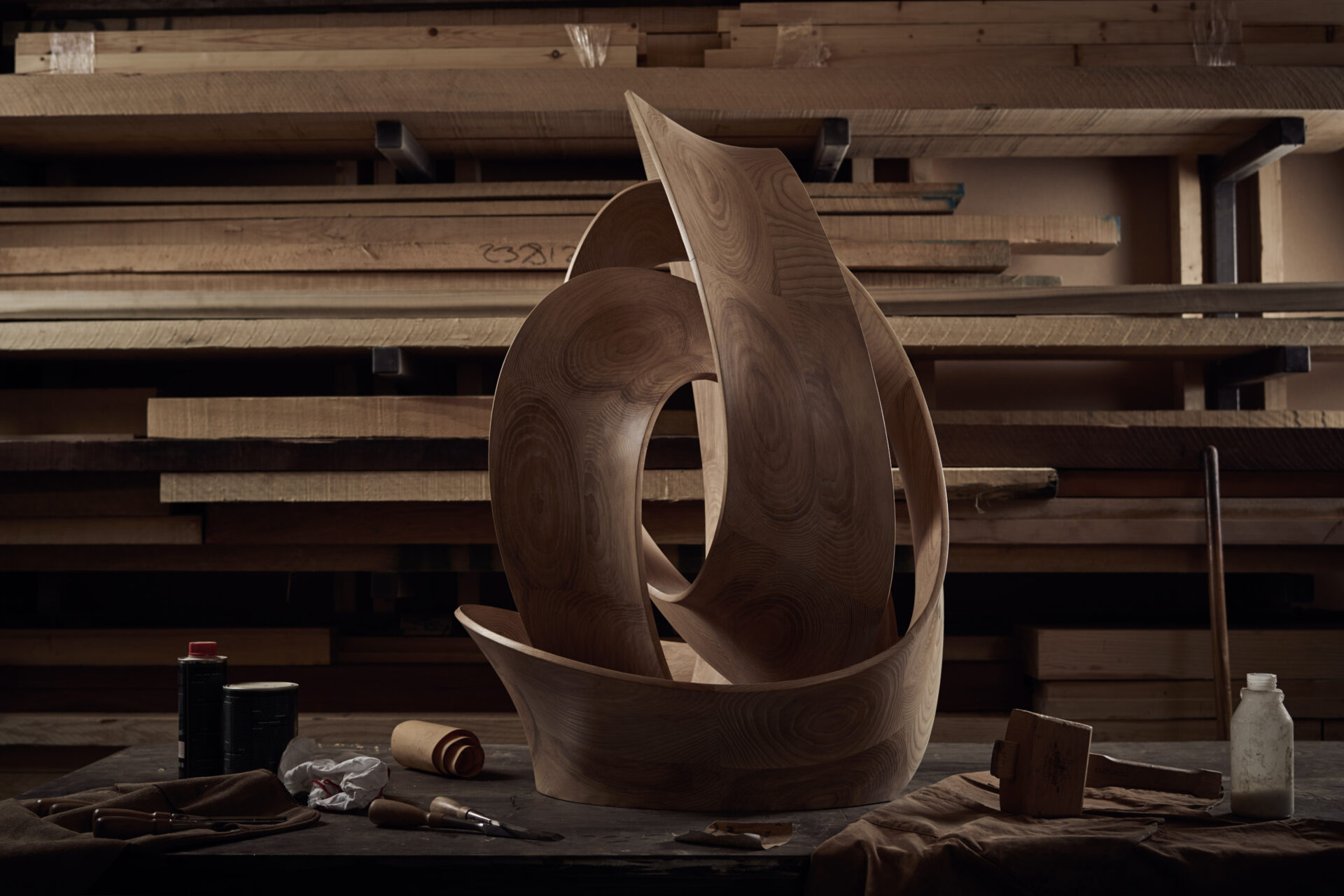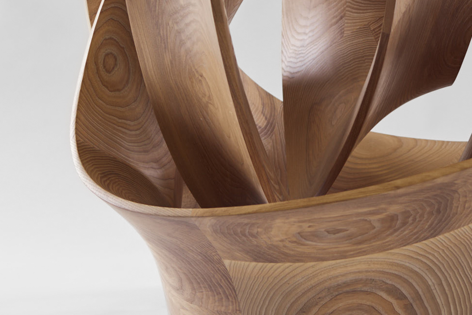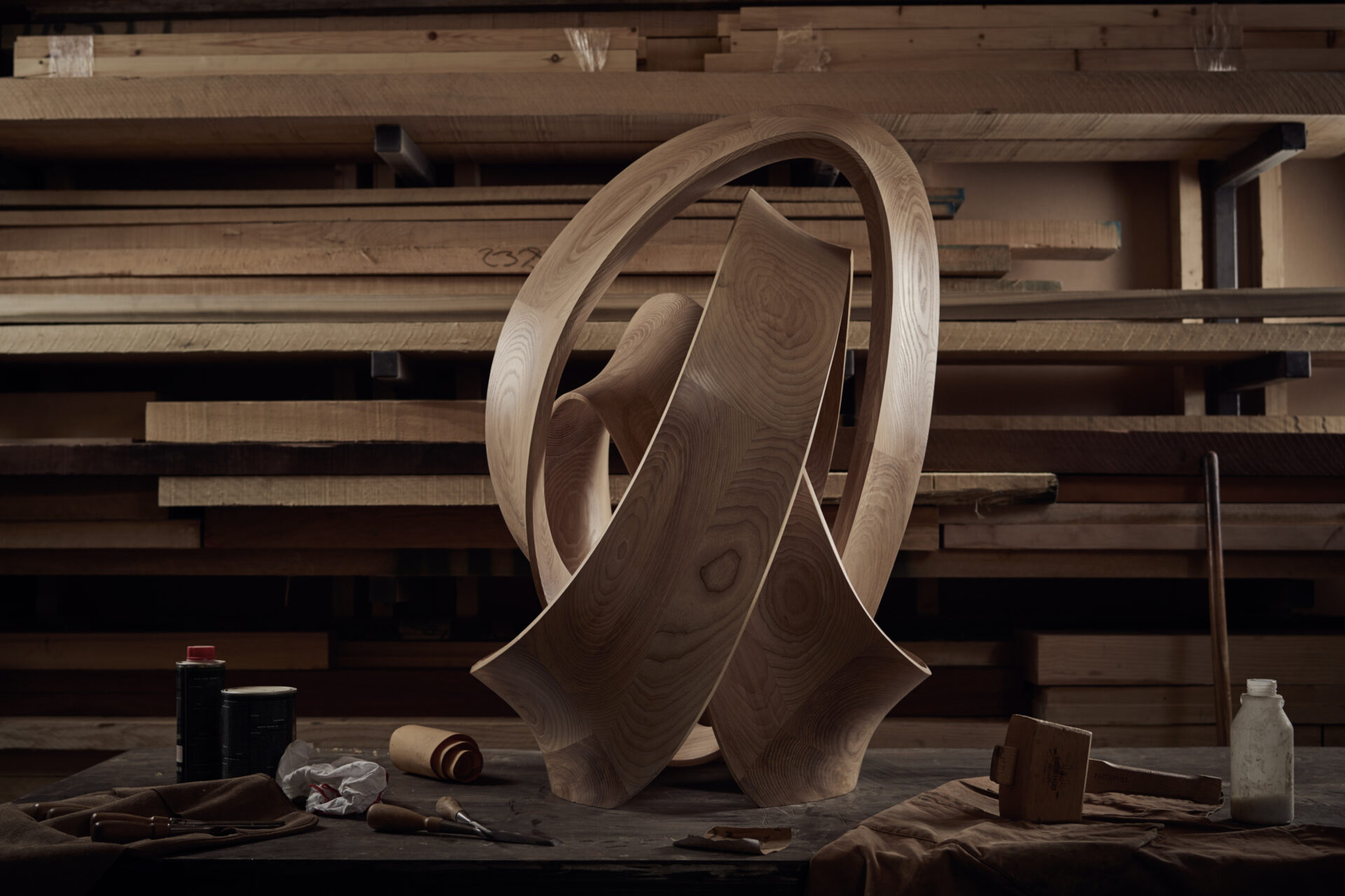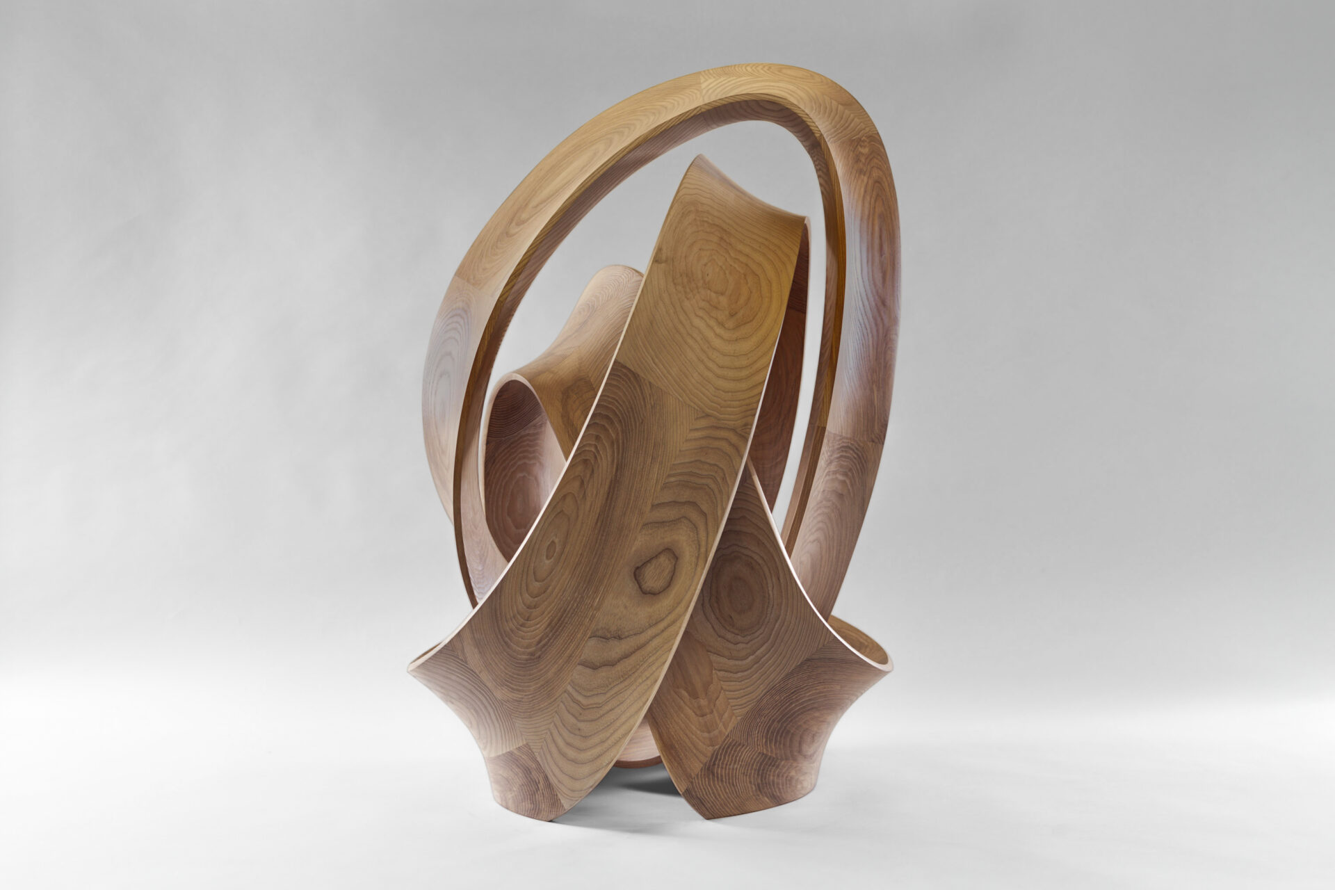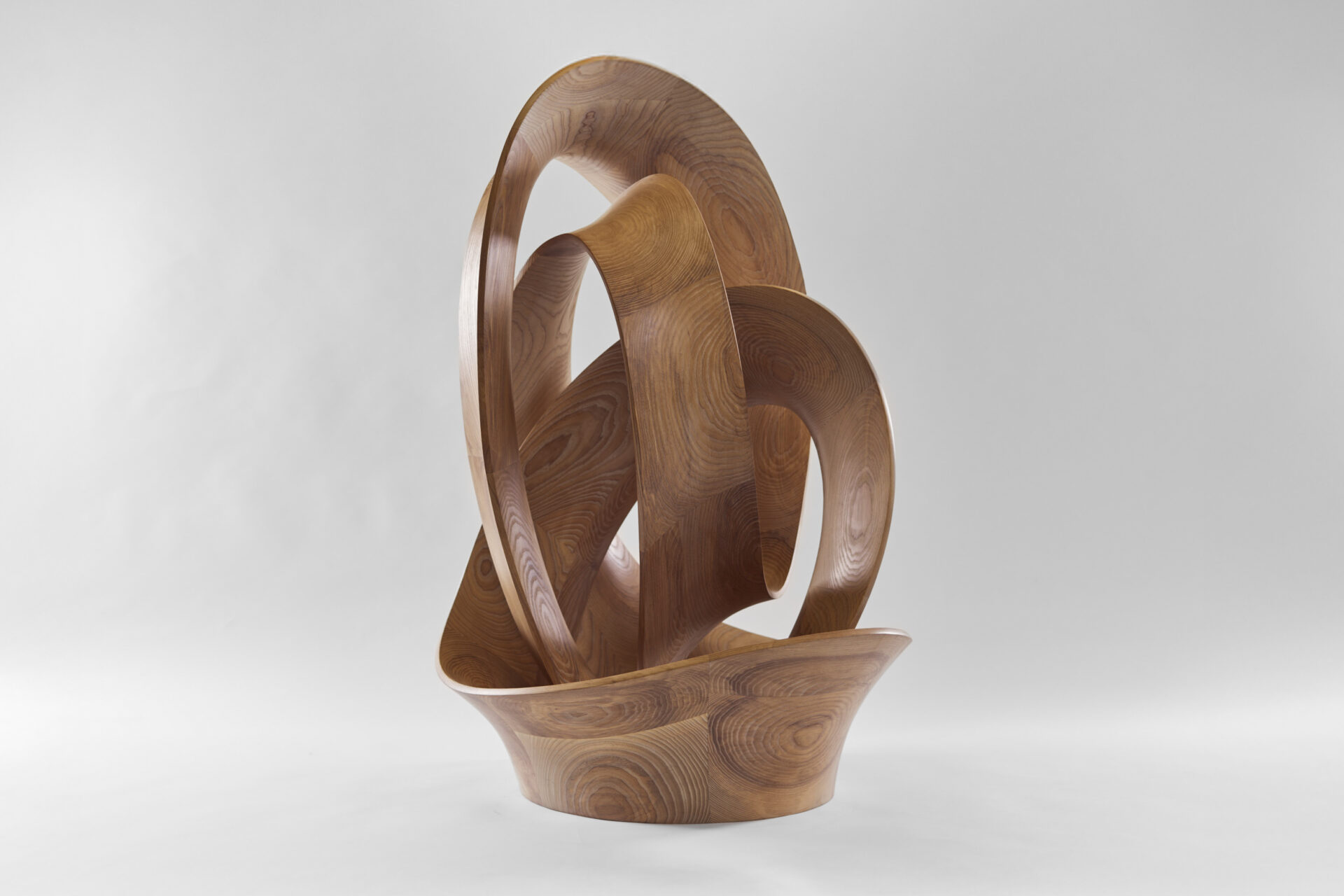 The Knot sculpture is a closed loop of timber intricately entwined, forming a knot that gracefully echoes the organic curves found in nature.
