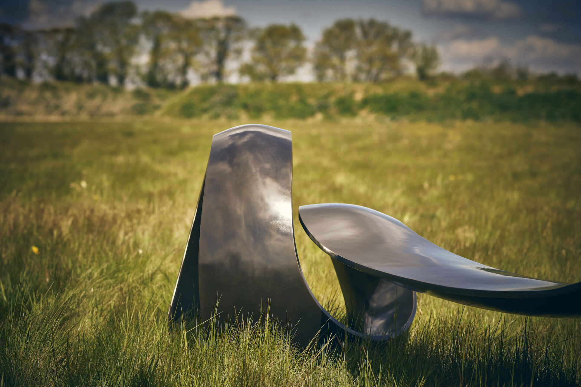 Though made of solid bronze, the form appears weightless, poised in mid-flight. Designed as both bench and chaise, it invites rest within a gesture of motion. Merging sculpture and function, the piece embodies a sense of fluid permanence — strength captured in the act of flow.